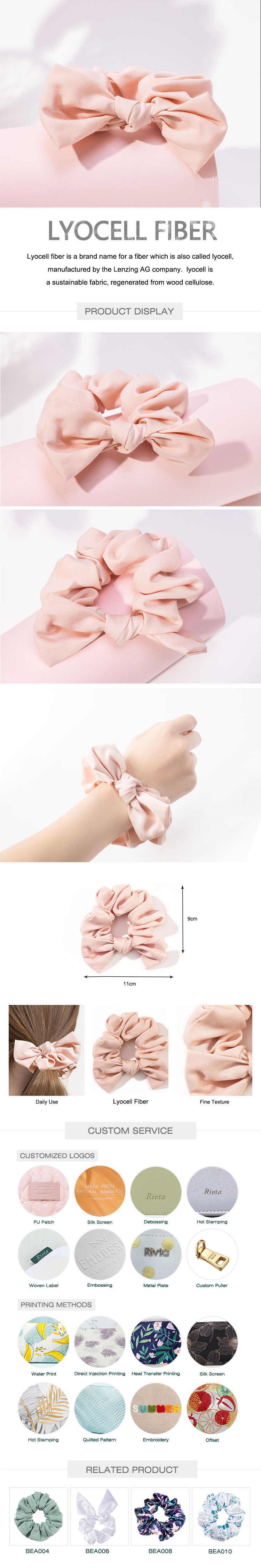 Solid Pink Bamboo Fiber Scrunchie | Gentle Beauty Sleep Hair Tie | Bulk Orders - BEA002