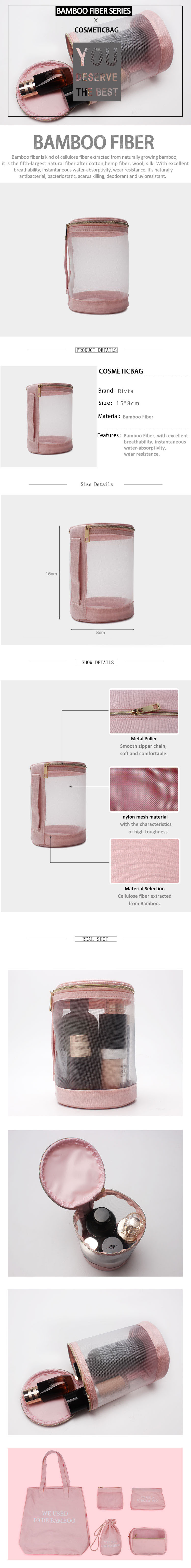 Luxury Bamboo Fiber Nylon Mesh essencial oil bag for on-the-go cosmetics organizing.