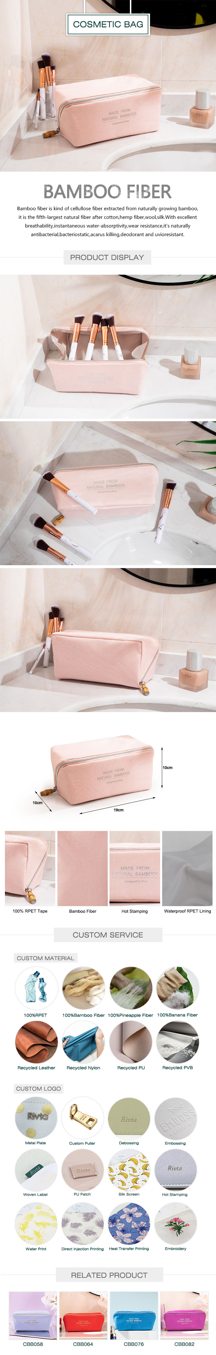 Our Bamboo Fiber toiletry bag is generously sized to hold your cosmetics.