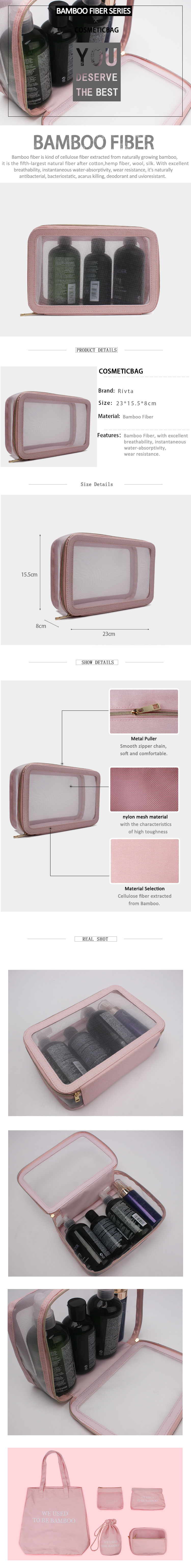 Travel Case Cosmetic Bag Bamboo Fiber Nylon Mesh - CBT052