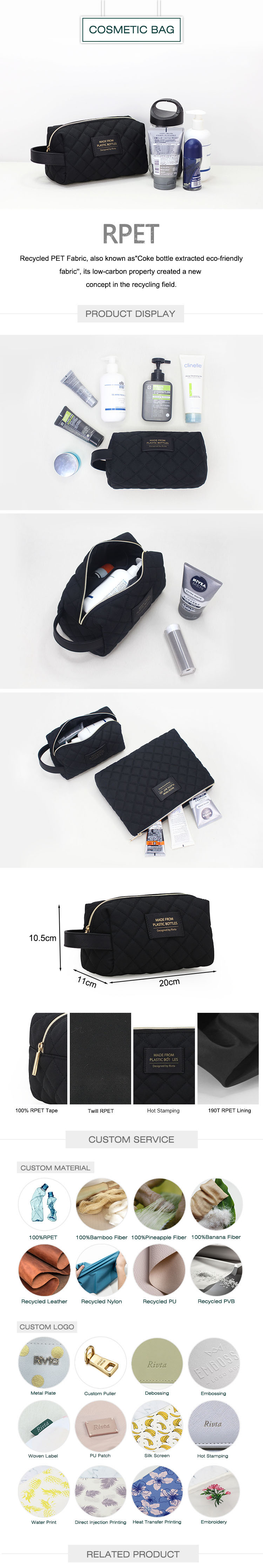 Our Recycled PET toiletry bag is generously sized to hold your cosmetics.